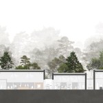 On the surface, the visitor and exhibition building will be the only visible manifestation of the new Cold War museum. Built as four black boxes, the building is tucked deep inside the forest. Solid and reclusive, the boxes appear in the forest as almost hermetically sealed display cases where only a discreet retraction in the facade indicates the entrance to the museum. The boxes are clad in anodised aluminium, giving them their own unique weather-resistant structure. Their appearance plays distinctively with the surrounding landscape, which houses one of Denmark’s best kept secrets – the 5,500 square metre nuclear-proof bunker built to house the Danish government and monarch in case of a nuclear war.