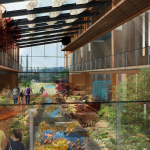 REGIONAL/COMMUNITY DESIGN: The Tilikum Crossing to the south and the MAX line to the east cup the building. This makes it an optimal location for more sustainable forms of transportation including bus, train, walking, and bike. This constant traffic around the site also improves the possibility for the building to have a high flow of traffic at all times of the day. The building was designed to feel welcoming to people passing by so that anyone could get inspired by the work that would be occurring inside. Additionally, many spaces on the site are there for public use and community engagement. Utilizing a “tried and true” visible construction system from the area eludes at the history of the area, while being a building of the future.