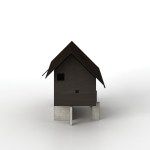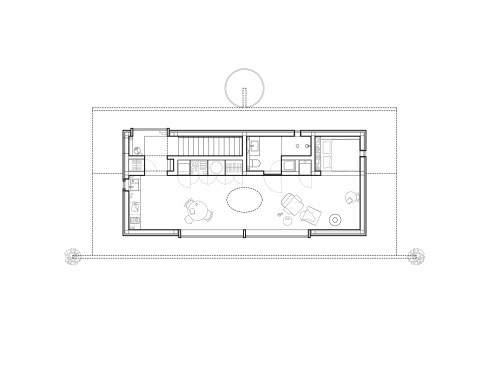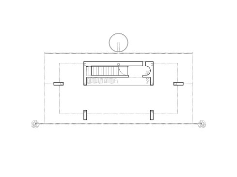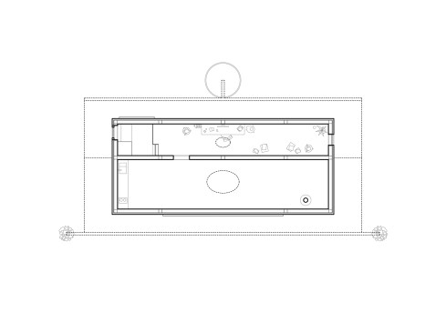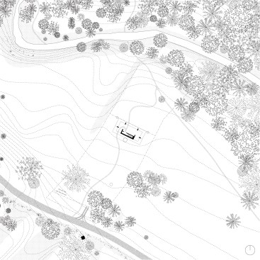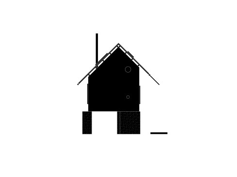 As imagined by the architects, the house’s processional drama would see the client approach it through the woodlands, ascending through its sheltered undercarriage to the main story, their arrival stirring the sleeping building to life. That narrative, combined with the design’s overall witchy-ness, gives WOJR’s project a decidedly eerie, fairy-tale feeling—recalling in particular the Polish myth of the Baba Jaga, the old sorceress who can both cure and curse, waiting for visitors in her forest hut set on chicken legs.