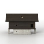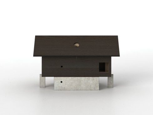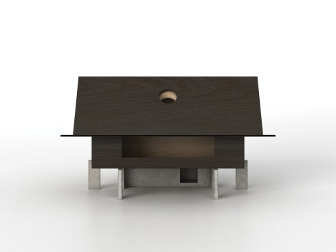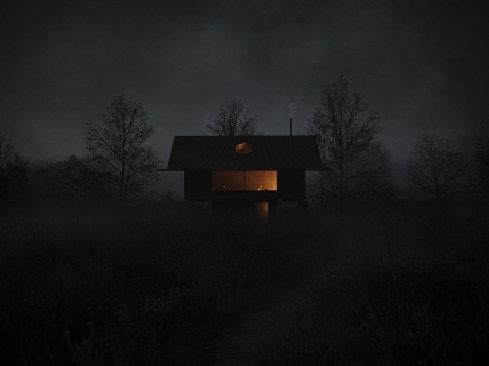 For the regietów chyża house in poland’s mountainous southeast, the Cambridge, Mass., office of WOJR channels all the romance and mystery of the Eastern European backcountry, producing a charming rural escape enlivened with just a hint of dark magic. Hoisted atop a series of concrete slabs, a conventional timber balloon-frame structure accommodates a simple, Existenzminimum-style program of kitchen, sitting room, bed chamber, workspaces, and bathroom, all packed with considerable sectional ingenuity into the modest wood-clad envelope. Over it all spreads a broad, steeply pitched gabled roof, cut with an ocular skylight set like a watchful eye over the landscape. Equally curious apertures appear elsewhere in the façade, including irregular cutouts in the base and a wide living-room window overlooking the surrounding wilderness.