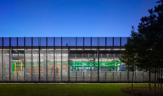 Located at the entrance of Wake Tech Community College, building creates a gateway to the campus and symbolizes the merging of technology, education and sustainability. While the primary function of the Regional Plant is to house heating and cooling systems, the project was an opportunity to highlight the striking aesthetic of building technology and to create a unique educational experience that reveals technology’s role in preserving the beauty of the natural world. The building serves as an educational facility for teaching students about energy efficient building systems. A simple rectilinear glass and steel box with a perforated metal screen layer houses, screens and displays the technology and creates a unique educational space for the college.