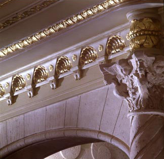 This project restored a Renaissance Revival lobby in an apartment building, facing Gramercy Park, designed by Emery Roth in 1928. Roth designed two 17 story buildings, one facing Gramercy Park and the other facing 22nd street and connected them at the ground floor with a 200 foot long lobby articulated by a rotunda in the middle of the block.