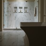 The creative team with Ami Austin Interior Design accomplished much more than basic interior design. They were able to reroute and update older, original plumbing and electrical; transport two tons of sand to level the ground underneath the space prior to careful tile work; and essentially repurpose the bathroom for everyday use and a spa-like aesthetic presence. To learn more: http://amiaustininteriors.com.