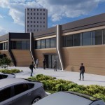 Democratic Republic of Congo is located in West Africa.Located in Kinshasa, the project is one of the buildings built during the colonial period, and its original architecture was beautifully designed for its period.We were asked to design a new facade on the 32 m of the existing building, which was built in 1978.By improving the existing facade, it was desired to obtain a new facade design suitable for commercial use.We tried to increase the architectural rhythm in the facade by emphasizing the column axes and adding one more column axis between each column axis.As a second alternative, a facade with wider proportions was designed by emphasizing only the axes with existing column axes.The sloping façade surface of the first floor was made flat and 60 cm more usable area was obtained in the interior, thus increasing the usable area in square meters along the entire façade.The use of corten rusted metal as an alternative material on the facade was tried. Corten rusted metal was preferred, parallel to the old structure of the building. The emphasis on building axes was increased by designing vertical linear lighting on the building axes.The ground floor was completely covered with laminated wood in larger proportions, where the columns on the building axes were emphasized, and the interior showroom area was disconnected from the outside. The ground floor was designed as glass to connect with the exterior in smaller proportions by adding an axis between the two column axes of the building.