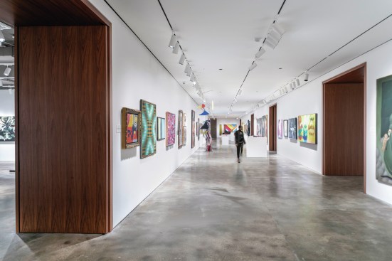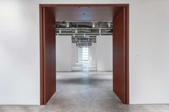 – Entry into gallery clusters is defined at their thresholds with custom stained walnut panels and doors, a nod to the traditional woodwork found at Sotheby’s London