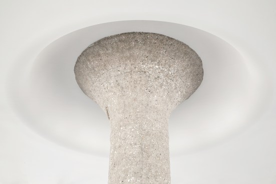 – For two of the double-height galleries, existing columns are reinforced with new concrete whose mix matches existing concrete aggregate found in the building, hand stripped and stippled