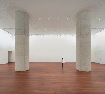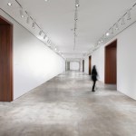 The redevelopment also aims to introduce a new aura for Sotheby’s as a part of the institution’s global program of concurrent enhancements in London and Paris. Entry into gallery clusters is defined at their thresholds with custom stained walnut panels and doors, a nod to the traditional woodwork found at Sotheby’s London. Simultaneously, the history of the building at York Avenue is not ignored. Existing concrete columns are exposed, stripped, and hand stippled to reveal their material character, and steel beams in open ceiling galleries are left exposed, acknowledging the building’s industrial past. The unique qualities and history of the New York headquarters are married with the heritage and tradition of the company and its London heritage.