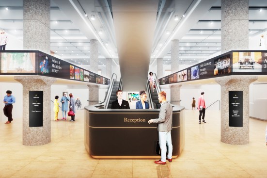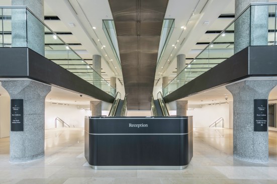 – OMA has also designed bespoke furniture for the escalator and front F1 lobbies, including reception desk, security desk, catalogue table, gallery information desk