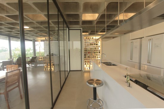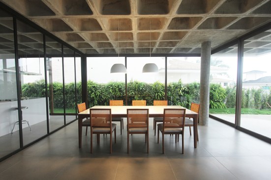 The Reserva House is a unifamiliar house, located in a gated community near São Paulo megalopolis, in the industrial city of Jundiaí. The idea of the Project consists in promoting the Family gathering. Its lower floor is a social open space that looks outside to the tropical garden that surrounds the building. The large span slab creates big spaces without partitions. It was used a reinforced concrete grid structure system, not very common in unifamiliar houses, that gives an industrial signature to the construction.