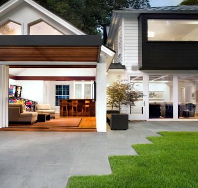 Located in a historic neighborhood, the front façade of the house had to remain unchanged for the most part, leaving the rear elevation of the house open to more dramatic alterations. Floor-to-ceiling windows replaced a heavy fireplace and French doors with thick mullions in the rear-facing family room; operable windows opened up the kitchen to the backyard; and a large three-panel sliding glass door transformed the den into an extension of the pool terrace.