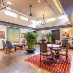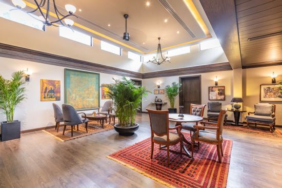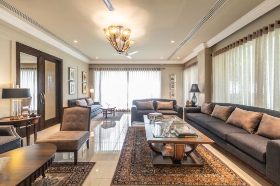 The contemporary interior sheathing consists of fine laminated wooden and gypsum finishes, which are adorned with classical Indian gilds of hand-knotted woollen carpets, a coalescence of traditional and modernist paintings, and furniture pieces. The idea was to curate an ambience inspired by the rich cultural heritage that resurrects the essence with which the houses were built during the British empire.