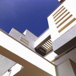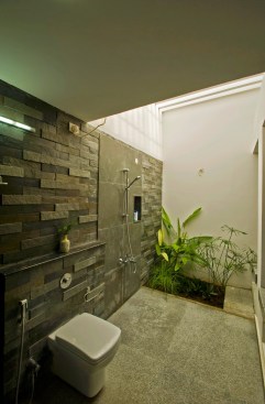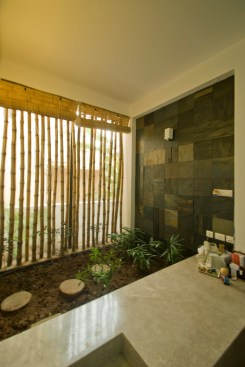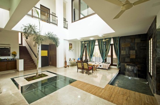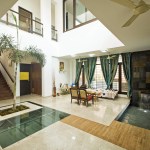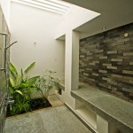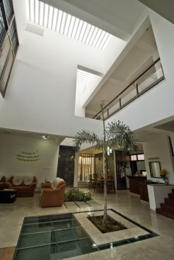 The skylights provided at the ceiling helps to shed light on the entire house by flooding in natural daylight. The central court and atrium acts as a medium connecting different part of the house. At every fraction of the house either at ground or at first floor a series of green courts have been sited to bring the concept of ‘man living with nature’.