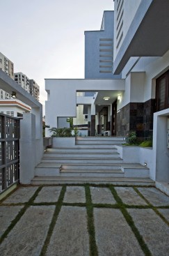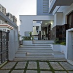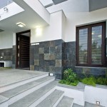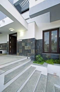 Slate tiles have been used at facade for easy maintenance.The contemporary style facade shifts between solid and void. The interior spaces express the real meaning of green courtyards, cross ventilation, natural lighting and openness
