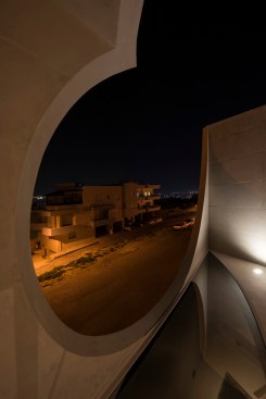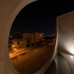 The house is located in a quiet new neighborhood of the Mediterranean city of Heraklion, not far form the city’s center. The flat, elevated corner plot offers views of the city and has a southern orientation. This family house was designed for the needs of a young couple and its two small children. It develops in four levels, hosting the living quarters at the overground floor level and the sleeping quarters at the groundfloor level. The latter, is open to the garden that is shaded by the main elevated volume which hosts another private bedroom and two open-air spaces excised from its two corners. The fair-faced concrete volume functions as a shelter both for the garden and the subjacent main living space. Its bright color is contrapuntal of the olive-green base that accommodates the other bedrooms -which will eventually be hidden by the climbing plants of the tensed inox-rope fence.