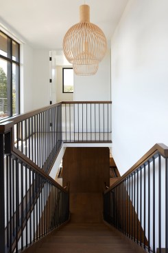 An important aspect of the design was the third story, which needed to be voluminous, but subtle so as not to overpower neighboring homes. The solution was to form a setback from the front facade, away from the street. The addition relies on glass and metal to give the form an airy and light sensibility. The existing structure of the home was extensively re-crafted, incorporating vertical cedar panels punctuated with new windows for additional light and views.