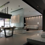 The lines of interior emphasize on alignment clearly and simple black and white molding, which shows interleaved levels of space, creating a visual sense, on the other hand, different space communicate with artworks and making artistic atmosphere in daily life, it becomes the impressive focal point of visual.