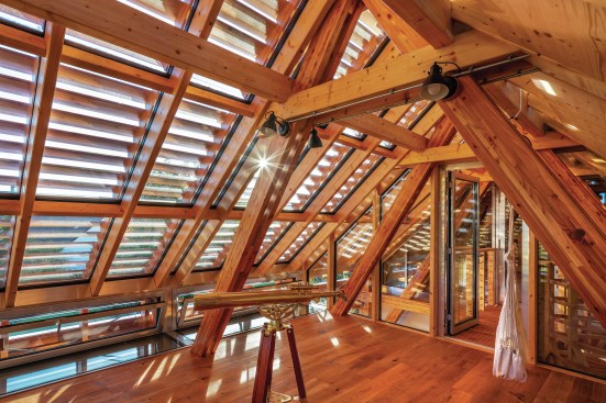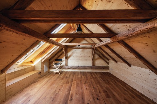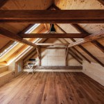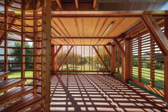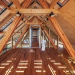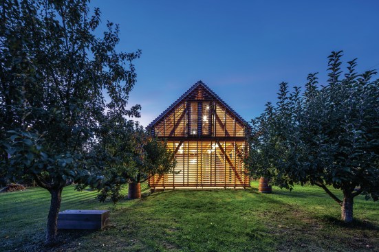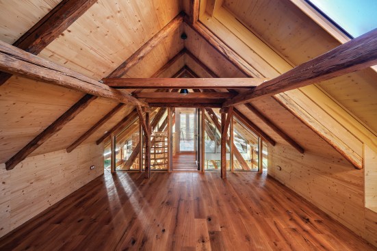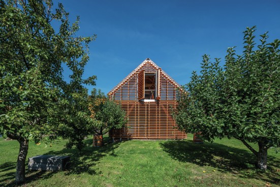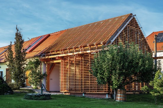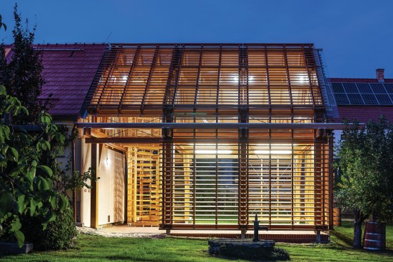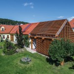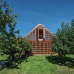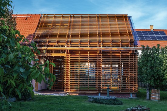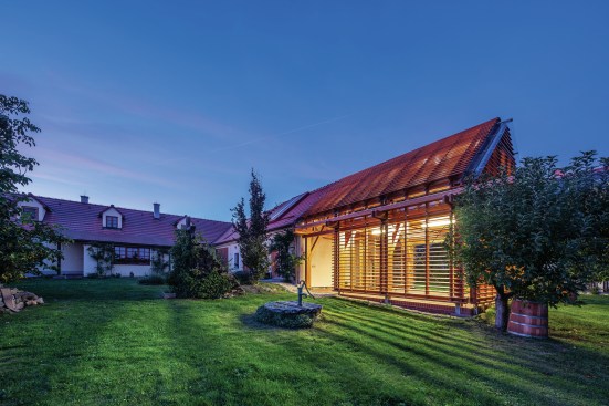 The investor wished for an extension to his farmhouse in Southern Bohemia, one that he could rest and relax in – a lookout and an observatory. We extended the volume of one of the wings of the building with a semi-transparent timber structure. In terms of articulation of form, the extension is in complete harmony with the original farmhouse. In terms of structure, however, the transparent timber frame, along with its zen atmosphere, is a complete contrast. The ground floor serves as a storage for firewood. Once through, one can climb up a spiral staircase onto a bridge connecting the old attic with the new. Each of the spaces encloses a single room. The old attic serves as an astronomical observatory, the new as a lookout. The plank-assembled exterior shading of the new attic allows one to peek through and observe the surrounding landscape. The observatory in the old attic, on the other hand, is a dim space that provides a lot of privacy, since light only comes in through a narrow window. A part of the roof can be moved at night-time and one can peacefully observe the stars. It is very comforting that once you examine the photographs, there is not much else to be said. We have repeatedly proclaimed that beauty can emerge as a result of a logical, utilitarian structure that exploits the possibilities of timber to its maximum. It is clear at first sight that precise articulation of a timber structure can create beauty without the need of ornament or any other aestheticization. The result clearly demonstrates that the client’s generosity and willingness to work with top notch specialists from the beginning has paid off. This namely includes our long-time friend and co-worker Zbynek Srutek. We have been collaborating for many years and our vision truly resonates with his structural reasoning. Not any less great were the contractors for the facade and many others, who participated on this small but nevertheless interesting project.