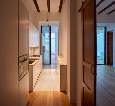 The space, in this case is an old townhouse with almost a hundred years of history located in one of the towns near Valencia, with a small backyard, and the needs of the clients, a young couple with three year old daughter. The new layout of the house comes out as a result of introducing these premises into the project, preserving the essence of the original housing, and opening the main spaces to the backyard. The original structure of the house, of wooden beams and beam fills, turns into an important part of the new layout as well as the old wooden doors that, although being in a new position, are all restored and reused to delimit the new spaces. Located back in the house there are the living spaces, living room, kitchen and the main room so that the backyard becomes the key area of the house, being a direct extension of the interior spaces. The new layout of the house and the backyard are proposed in three areas: The central area in with the most important rooms of the house are located: the entrance, hallway, the living room, the dinning room and the orchard area. The upper area where the rooms are located, two smaller rooms lighted up with the house´s access road, the master bedroom and the pool area. The lower area in which the kitchen area, laundry and barbecue are located.