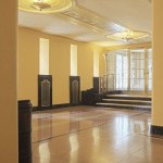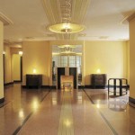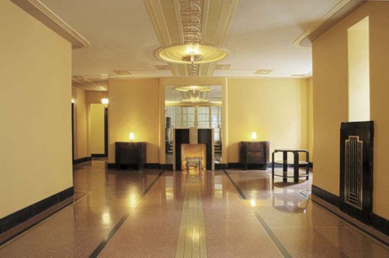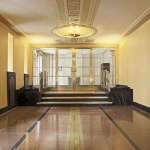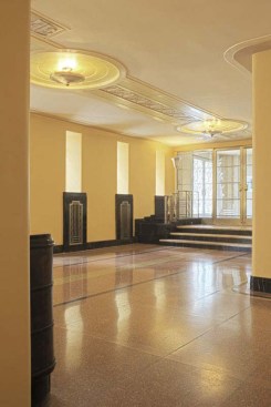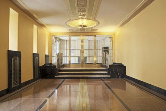Although the Art Deco lobby still has its original components (polychrome terrazzo floor, etched glass doors with nickel frames, ceiling with geometric pattern, etc.) the ensemble has lost its cohesiveness.