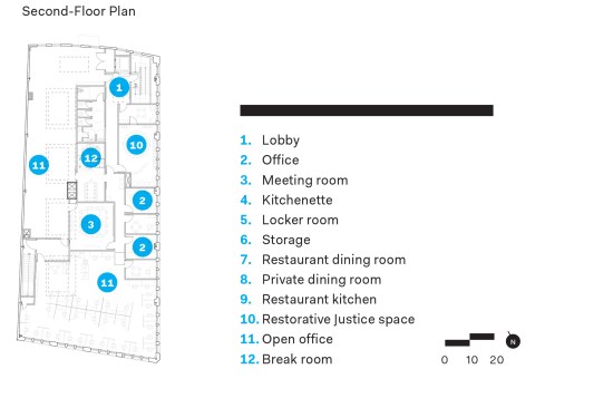 The success of Restore Oakland has fueled DJ+DS’s desire to develop more restorative-justice spaces. “It’s a radically different approach that fosters transformation of communities through forgiveness and compassion,” Roberts says. “It’s a very different path than punishment, fear, and alienation.” For architects, she says, the question is, “How do you provide infrastructure, buildings, policy that supports [that] in a real way? Architects have to engage with people who are dealing with policy and education around criminal justice reform.”