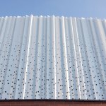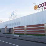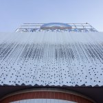 EXTERNAL The operation, with a limited budget, was initiated by the redesign of the logo representing, borrowing the circle and declinanadolo both in graphics of the new plaque is in the facade textures to create holes with variable size and density on the surface you choose for coating the top of the facade. This skin as the entire body summit that houses the administrative part, preserving healthy sight of indoors and are not deprived of natural light, while being shielded from the white cloth used to give more unity to the previous color design, made piecemeal by the chromatic alternations and small windows to view the office.