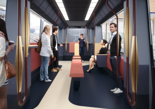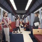 Facilities such as a cup holder for your coffee, a hook to hang your jacket or bag, USB points, and places for luggage, stroller, wheelchair and bicycle have also been thought of. The modular, multifunctional design allows for a wide variety of setups to suit the diverse needs of metro passengers.The result is a dynamic sitting and standing landscape with a warm appearance, in which more passengers can travel comfortably and pleasantly. You can easily find your way within the metro, exits are easy to find thanks to lighting integrated into the ceiling that helps with orientation. The exits and entrances are spacious, so that the flow of passengers to the central area of carriages is stimulated and boarding and disembarking is smooth.