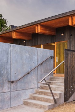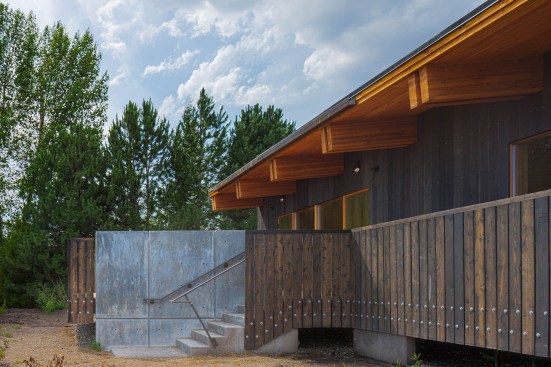 The State of Idaho produces high quality wood building products such as dimensional framing lumber, cedar siding, engineered I-joists and glu-lam beams. However, no one has attempted to build a contemporary building entirely from only Idaho forest products. Challenges unique to the project included the flooring material and the windows. The architect began researching the native wood species of Idaho to determine a thoughtful solution. Western Larch, commonly known as tamarack was the selection for the flooring. The hardest of the softwoods and commonly used in Scandinavia, larch was harvested from the University of Idaho’s experimental forest, dried in university kilns and milled specifically for the flooring throughout the classroom building.