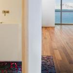 The owner of this penthouse pied-à-terre overlooking the Atlantic Ocean uses it primarily to entertain business colleagues. To that end, Erla Dögg Ingjaldsdóttir, AIA, Assoc. IIDA, and Tryggvi Thorsteinsson, Assoc. AIA, created a dramatic, disappearing kitchen that works equally well for meetings or dinners. “It has everything you need in a kitchen—dishwasher, refrigerator, stove, coffee machine—but it’s all hidden,” Ingjaldsdóttir explains.