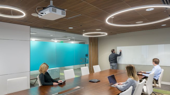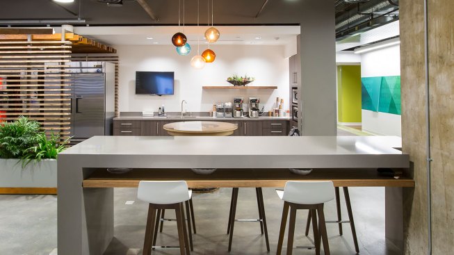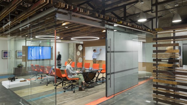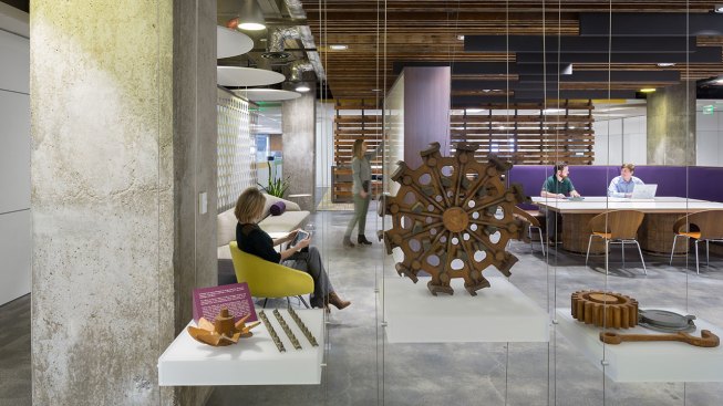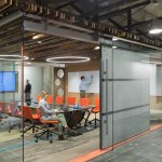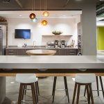 Designers used color to give each floor its unique personality and used the idea of the circle, harkening back to the now retired iconic smoke stacks outside, as a consistent design theme. More glass has been added throughout, creating transparency and access to natural light that didn’t exist before. The “urban loft” result is modern, engaging and rooted in the company’s impressive heritage.