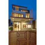 The animated labyrinthine tectonics of the ribbon fenestrations were articulated in the design of other elements like the house number on the entry gate and the boundary walls.