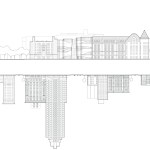 east-west axis, allowing visitors to move beneath and across connective bridges
