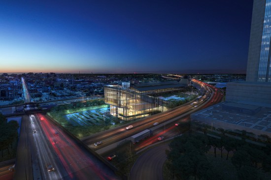 The site lies between a busy rail line and interstate I-95 and is along the interpretive Richmond Slave Trail. The concept design of the museum building is a metaphor representing the idea of the earth being pulled or pushed up to expose the hidden history beneath the site. The raised earth is tilted to create an iconic gesture of upliftment and hope. At its peak, an outdoor terrace creates a lookout point to the adjacent African Burial Ground, the James River, the Virginia State Capitol, and to the network of other slave-trade sites throughout Richmond’s Shockoe Bottom district.