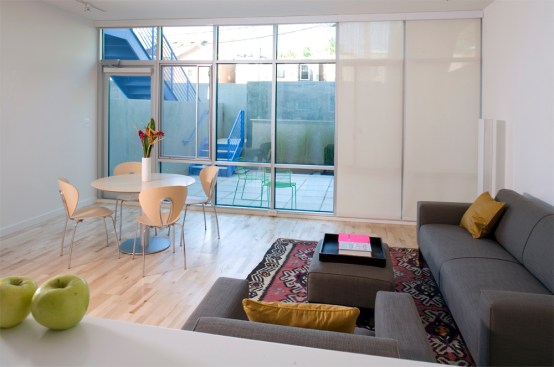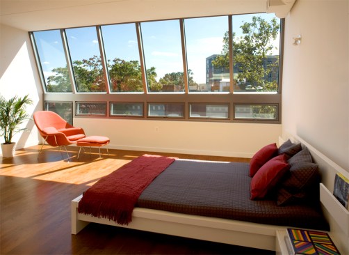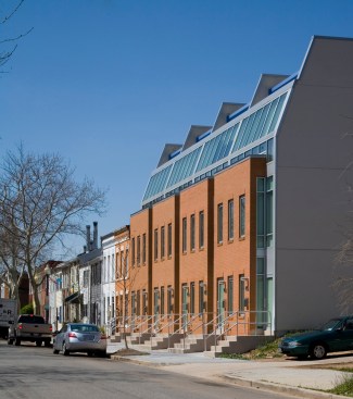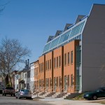 Ridge Street Row is an 8-unit development that reinterprets the historic row house. Developed by the architect, the challenge was to realize a feasible project driven by sustainability and design. The site is located on a street of mostly 19th Century two-story row homes. The architect sought to design contemporary housing that both respects and differentiates from its historic context. The result, a two-story brick façade with punched windows and a glass sloped and recessed third story wall, presents a play between modern and historic. Sustainable construction methods unconventional in row house design include the use of prefabricated concrete panels and hollow core planks. Through the inclusion of terraces and large expanses of glass, rooms extend beyond their walls to invite the outdoors in. The project sets a standard for urban living by achieving ecological and aesthetic harmony between the building’s unconventional structure and its context of historic urban fabric.