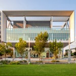 The project responds to the local climate with a shaded public plaza, trellised roof terrace, and sculptural sunshade ribbons on the south, east and west windows. The library has dedicated floors for Children, Adults and Teens, and this stacking of major program elements allows a direct visual link to the Mississippi River from the upper levels.