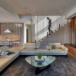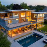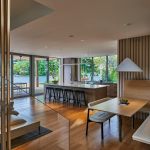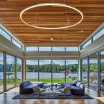The house is designed for entertaining large groups, with an elegant panoramic social living room and dedicated support areas. Private family spaces are focused on selective western views across the river with direct access to outdoor covered patio areas and a pool. The children’s area upstairs has its own roof deck and can be closed off completely during entertainment events.