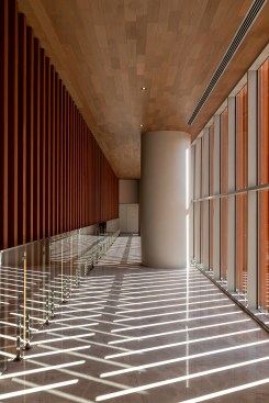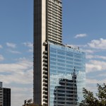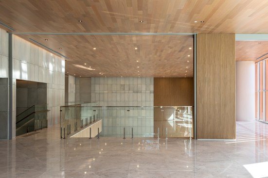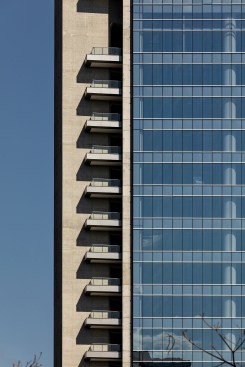 Located in an area of high car traffic, RiverOne aims to reintroduce human scale to the city. To reach this goal, the design includes an active façade, proposing a generous transition between the exterior and interior. The project is also based on a podium that includes 2,600m² of commercial areas and a theater, distributed over four floors with generous ceiling heights.