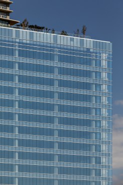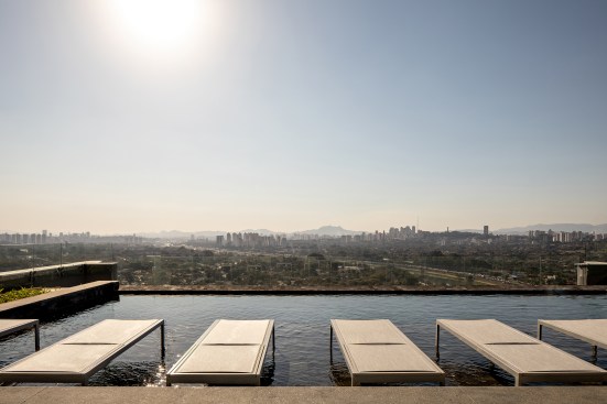 The corporate spaces start on the 6th floor and go up to the 19th, with approximately 1,500m² each. They will be standard Triple A offices with a wide ceiling height of 4.15m, arranged side by side on the 1.2 thousand m² slabs. From the 20th floor, at a height of 90m, the residential area begins. Also on this floor is the leisure area, with a gym, a ballroom, and an infinity pool with a surprising view of the city. The 120 apartments – from 35 to 62m², go up to the 35th floor, with eight units on each level.