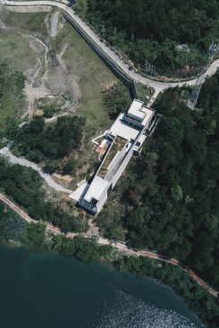 To prevent the lush vegetation and complex topography being bothered, we seek to design architecture that intervening environment the least possible. To achieve the goal, we connect two selected points between the waterfront and the mountain forest with the building volume, perpendicularly to the shoreline. Without damaging any of the natural surroundings, the slender building volume appears to be a "plant" that grows from the woods and stretches to the waterfront.