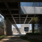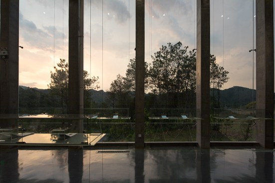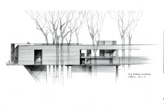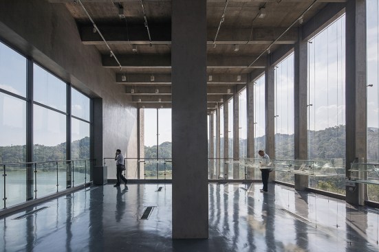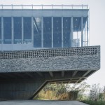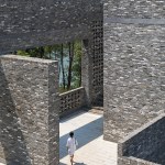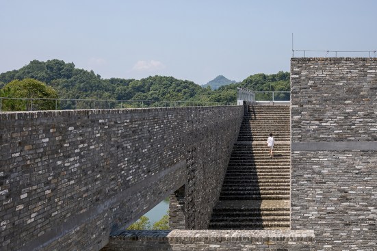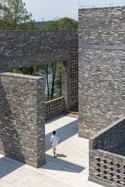 The traditional “mortise and tenon” relation exists not only in different parts of the space, but also in the association of different materials. The brick and concrete, two kinds of distinctive fabric, connects and transits smoothly in the façade. In addition, the architecture, facing the water, is designed to be gradually narrowing to look slimmer. The design weakens the sense of building volume, and further, makes the architecture in harmony with the natural surroundings.