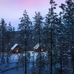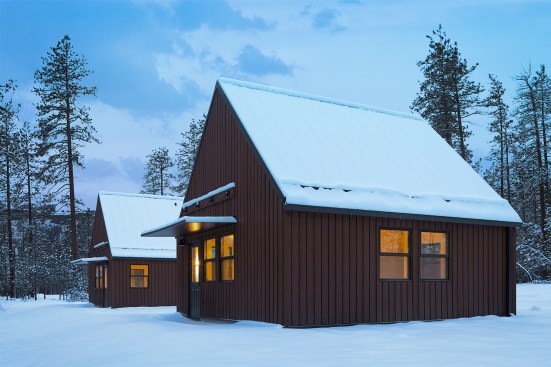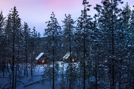 The cabins are constructed out of SIPS panels. The module SIPS panels allow for quick construction while creating durable wood interiors with a warm atmosphere. Each cabin is clad with cedar siding and standing seam metal roofs. The interiors can sleep a family comfortably and provide a bathroom and a kitchen area with a sink and a dining area.