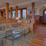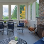 This Mercer Island shingle style custom home features an exterior of stone masonry and cedar shingles with the stone serving to anchor the home to its site. Traditional exterior forms contain the open floor plan of a more contemporary interior design which stays true to the shingle style through authentic detailing and appropriate materials. The interior is organized in an L shaped plan of three levels with the stairs located at the intersection of the major north south axis and the minor east west axis. The owners like to enjoy their outdoor spaces year ‘round, so the home not only provides indoor spaces which flow into outdoor spaces it features a screened three season porch with removable storm windows which protect the outdoor room from cool spring and fall breezes while still providing the feel of an open porch. The main floor houses the living spaces, all of which have a view east toward Lake Washington and downtown Bellevue. The bedrooms located on the upper floor are also afforded this view. The location of the recreation and craft rooms on the lower level provide acoustic privacy while keeping them connected to the rest of the home.
