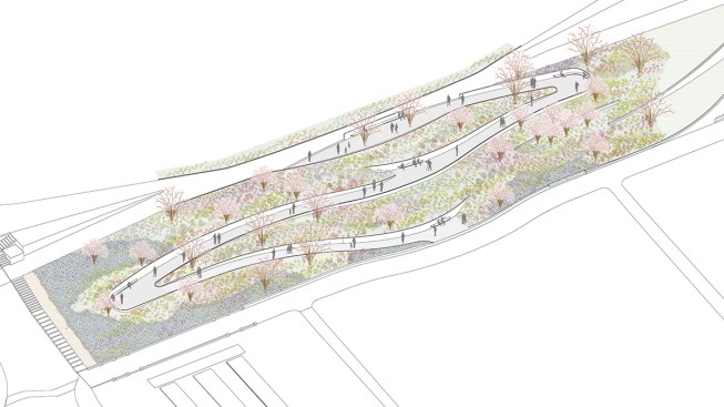 Brooklyn, NY—Brooklyn Botanic Garden today announced plans for the Robert W. Wilson Overlook, designed by the innovative, multidisciplinary architecture firm Weiss/Manfredi and opening in summer 2019. One of the Garden’s most significant undeveloped sites, the Overlook encompasses a 1.25-acre area with sweeping views over Cherry Esplanade and the Garden at large. Taking design cues from the adjacent Diane H. and Joseph S. Steinberg Visitor Center—another project designed by Weiss/Manfredi and winner of 20 design awards, including the American Institute of Architects 2013 Honor Award for Architecture—the new Robert W. Wilson Overlook will be reimagined, reconstructed, and replanted in its entirety to create an immersive landscape that amplifies one of BBG’s most extraordinary vistas.
