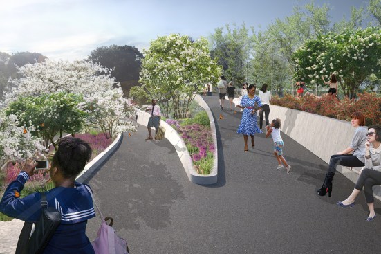 “We are thrilled to continue our work with Brooklyn Botanic Garden,” said Marion Weiss and Michael Manfredi, of Weiss/Manfredi. “Our design for the Robert Wilson Overlook is conceived as an ascending crape-myrtle garden shaped by spaces for communal gathering that overlook the iconic Cherry Esplanade. The curvilinear path, cast stone walls, and integrated benches and lighting choreograph a collection of framed views that reveal the magic of the garden.”