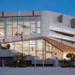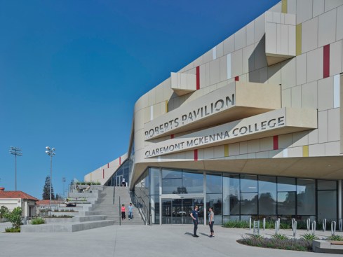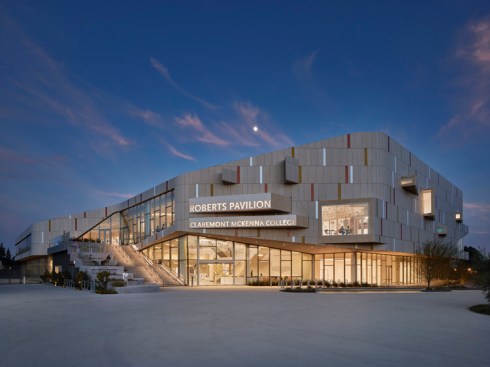 With Claremont McKenna College’s new Roberts Pavilion, John Friedman Alice Kimm Architects (JFAK) has dramatically redefined what a college athletics venue can be, designing an iconic social hub that brings students and faculty together while demarking a new gateway for the campus that reacts to the push and pull of surrounding buildings, playing fields, and aquatics center.
