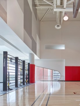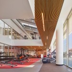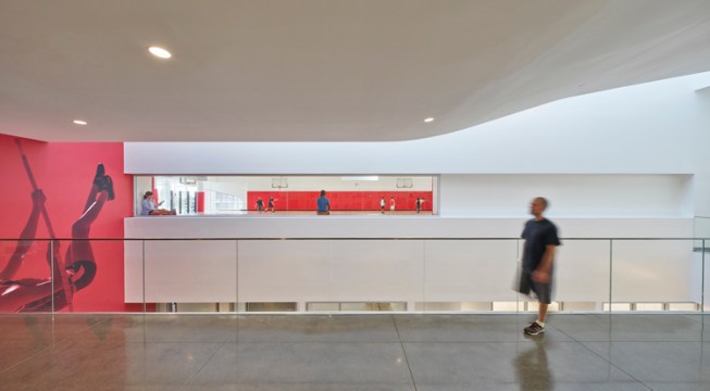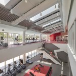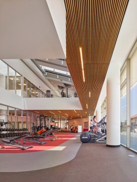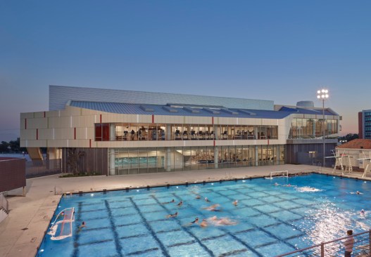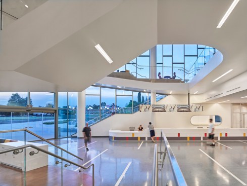 “We wanted the light to be extraordinary,” says John Friedman, principal-in-charge. “When you walk in the lobby you can see into the arena, across the arena, and then out to the track and field and the mountains beyond. You can even look through the building, through four layers of glass, and see the pool on the other side.”