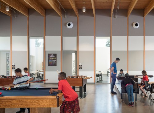 The new Rockwood Boys & Girls Club aims to attract and inspire youth after school and on weekends. The club includes a secure entry, bike parking, gym, kids’ café, learning center, youth and family services space, and an art studio. Club programs make use of the spaces during after school and weekend hours, and a synergy of program need enables Open School to use those areas during school hours.