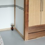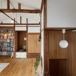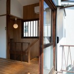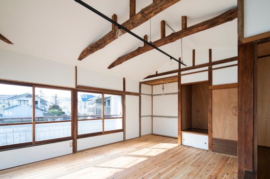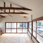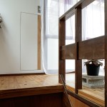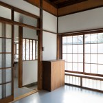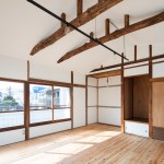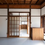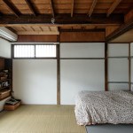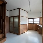 Regarding the layout, both two levels removed their tatami mats in favour of a cushion floor below and a wooden one above. Furthermore, a closet has been removed from each room to enlarge the volume, though leaving a trace of it in the walls to highlight the renovation.
