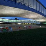 meters, it provides a seamless network of services, libraries, information gathering, social spaces, spaces to study, restaurants, cafes and beautiful outdoor spaces. It is a highly innovative building, with gentle slopes and terraces, undulating around a series of internal ‘patios’, with almost invisible supports for its complex curving roof, which required completely new methods of construction.