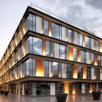The modular façade design gives the advantage of flexible pattern which is made of traditional, enduring materials. The grid of 160cm is divided into 110cm and 50cm sub-modules. The distinctive façade pattern of the RMO is created by alternating the sub-modules and the combination of three materials: glass, wood and white panels. Moreover, a stainless steel mesh is used as vertical sun-shading elements. Finally a series of Illuminated beams are used to highlight the floors and to make the building more dynamic horizontally also at night.