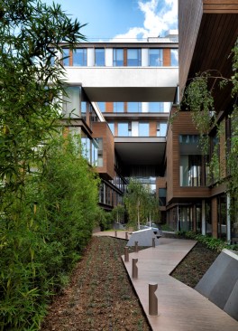 The construction area is limited by the Cemal Sahir street and Raşit Rıza street, which have a 9 meter difference in height. The building is composed of two main volumes: the ground-floor volume with 5.50m height and an upper volume of 18.50m in accordance with the municipal urban regulations. At the heart of the project there is an open-air court yard dominated by trees and a variety of other natural elements that offer a unique sense of tranquility and reclusion from the bustling urban environment of this area of the city.